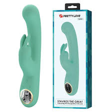 This premium rabbit vibrator comes from Pretty Love's Stavros The Great LED Display Collection and is blessed with synchronised dual motors to stimulate your sensitive G-spot and clitoris simultaneously for your best blended orgasms ever. The flexible curved shaft is topped with a bulbous head that targets your G-spot while the elongated buzzing bunny dances over your clitoris in 10 thrilling vibration patterns, each with 9 intensity levels! The intuitive 3-button controls (power for on/off and next vibration mode, +/- for adjusting intensity level) are oriented to face the right way up when you're using your Lamar Rabbit Vibrator and there's also a digital LED screen that shows you everything you need to know, including what vibration mode and intensity level you're on, and your toy's battery level.