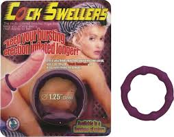 The cock swellers ring is 1.25 in diameter and will fit most users. Available in two colours this ring can be easily washed with soap and water after each use. To ensure compatibility with protection be sure to slide this ring on over a condom if one is being used. Colour: purple and green type: cock ring diameter: 1 1/4 special features: embedded beads.
