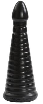The Intimidator is a XXL anal dildo from the TitanMen collection. The black dildo has a pointy tip and is provided with a ribbed structure on the entire shaft. The wide base has a round opening at the bottom, so you can use it with Vac-U-Lock strap-ons.