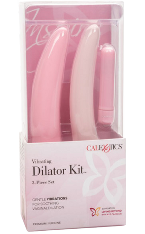 Revitalize and strengthen vaginal muscles with the Inspire Vibrating Dilator 3-Piece Set. The uniquely designed dilators are ergonomically curved and gradually sized to allow for gentle dilation. The premium silicone probes have a durable finger loop for gentle insertion and stimulation, pair with the included mini bullet vibrator for intensified sensation!