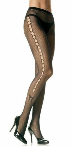 Leg avenue seamless spandex fishnet pantyhose with keyhole and butterfly detail 9710