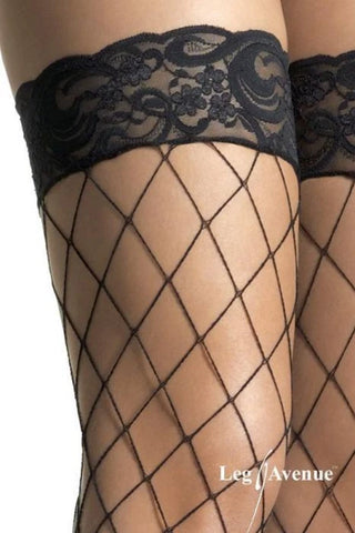 - Sexy coarse-meshed women's nylon fishnet stockings with lace trim
