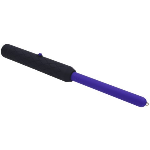 Motivation comes in many forms. This cattle prod-style electroplay wand creates different sensations specific to the area it’s applied with a light zap perfect for training or teasing. Tickling, tingling, and a moderate sting are all within the realm of possibility with the Stinger. The Stinger’s handle features a non-slip, non-conductive rubber grip, and a safe but powerful current runs between two prongs at end of the contrasting violet shaft.