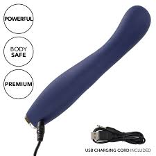 CalExotics Chic Peony Blue G-Spot Vibrators is sophisticated, refined and powerful. G-spot wand with dual motors. Features 10 incremental speeds of vibration. Luxurious Silicone with decorative accents. Dual motors. State-of-the-art memory chip resumes on last function used. Security travel lock feature hold for 3 seconds to turn on or off. USB rechargeable charging cord included. Complete charge in 2.5 hours. Runs for 40 minutes on high speed and 90 minutes on low speed.
